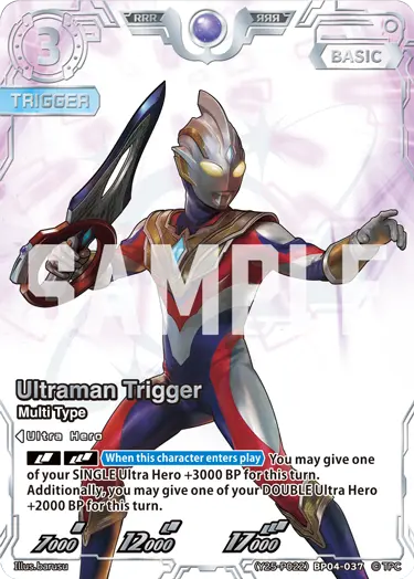 [DBL][TRP]《When this character enters play》You may give one of your SINGLE Ultra Hero +3000 BP for this turn. Additionally, you may give one of your DOUBLE Ultra Hero +2000 BP for this turn.