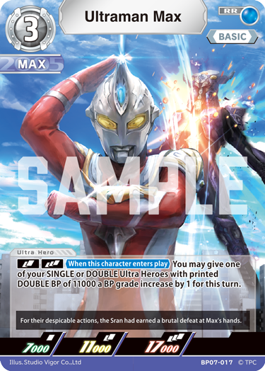[DBL][TRP]《When this character enters play》You may give one of your SINGLE or DOUBLE Ultra Hero with printed DOUBLE BP of 11000 a BP grade increase by 1 for this turn.