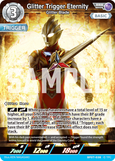[DBL][TRP]While your characters have a total level of 15 or higher, all your SINGLE 「Trigger」 each have their BP grade increase by 1. Additionally, while your characters have a total level of 25 or higher, all your DOUBLE 「Trigger」 each have their BP grade increase by 1. This effect does not stack.