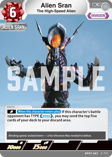 [SIN]《When this character enters play》If this character's battle opponent has TYPE 【SPEED】 , you may send the top five cards of your deck to your discard area.